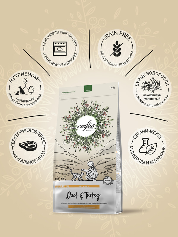 CRAFTIA HARMONA — корм для кошек ультрапремиум класса, созданный с любовью к природе.
