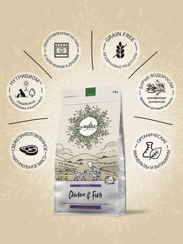 CRAFTIA HARMONA — корм кошек для ультрапремиум класса, созданный с любовью к природе.
