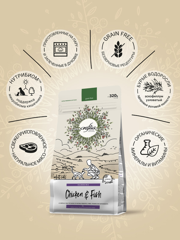 CRAFTIA HARMONA — корм кошек для ультрапремиум класса, созданный с любовью к природе.