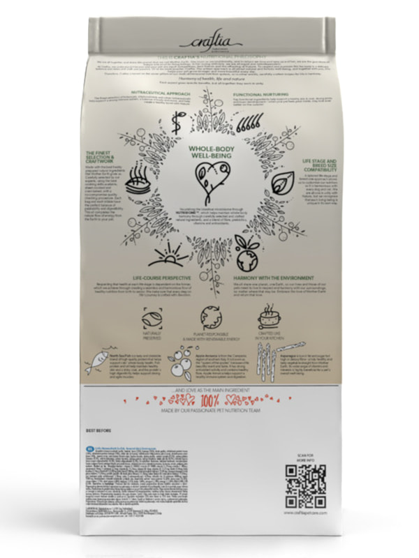 Состав кормов CRAFTIA прозрачен и понятен, отсутствуют скрытые добавки и сомнительные ингредиенты. Все, что заявлено в составе корма, гарантированно присутствует в каждой грануле. Собственный завод, сотни квадратных метров научно-исследовательских лабораторий, первоклассное сырье — все это позволяет создавать тщательно сбалансированный высокобелковый корм с холистическим подходом. Все компоненты корма подходят для употребления человеком и не содержат ГМО.