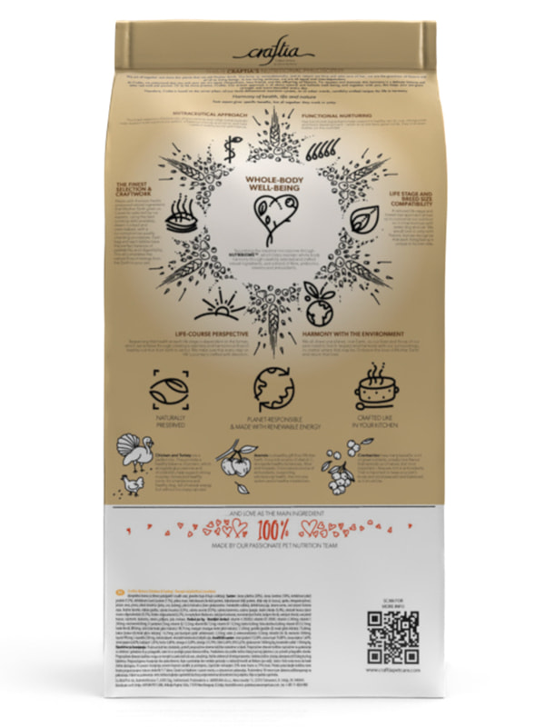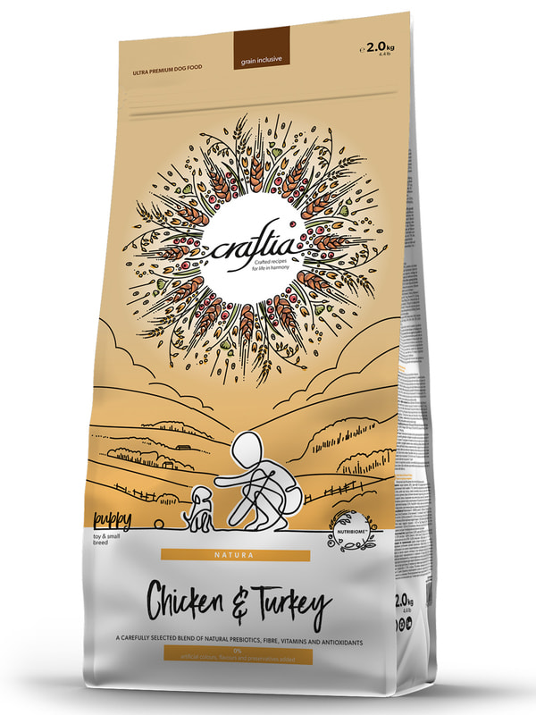 CRAFTIA NATURA сухой корм для щенков миниатюрных и мелких пород из курицы и индейки.