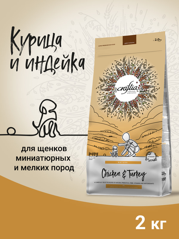 Повседневные корма Craftia Сухой корм CRAFTIA NATURA для щенков миниатюрных и мелких пород из курицы и индейки 2 кг