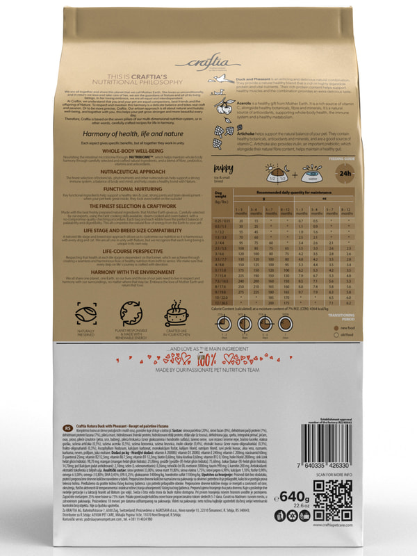 CRAFTIA NATURA сухой корм для щенков миниатюрных и мелких пород из утки с фазаном .