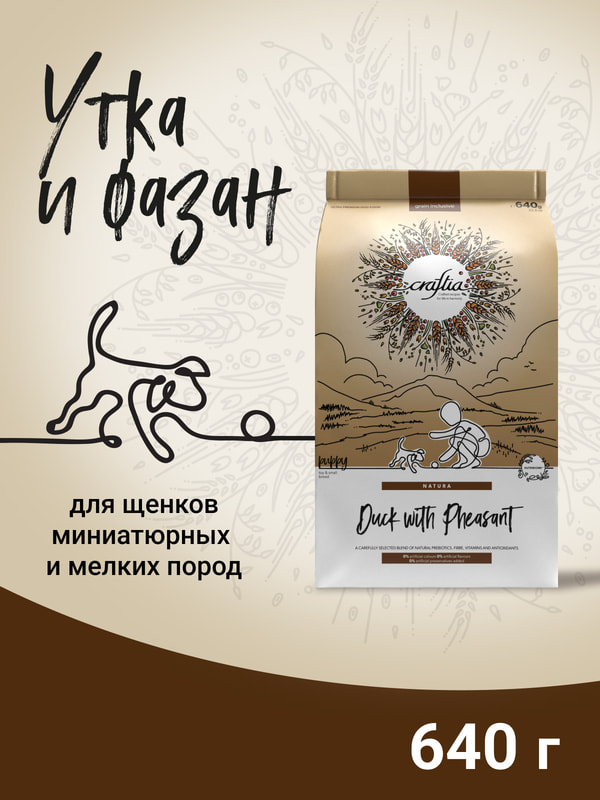Повседневные корма Craftia Сухой корм CRAFTIA NATURA для щенков миниатюрных и мелких пород из утки с фазаном 640 г