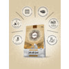 Источники углеводов — спельта, бурый рис, ячмень, овес и просо. Специально подобраны злаки с разным гликемическим индексом, чтобы питомец дольше чувствовал себя сытым: глюкоза поступает в организм постепенно, а значит, чувство голода не наступает дольше.