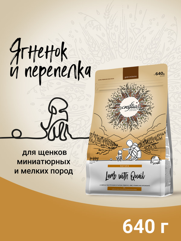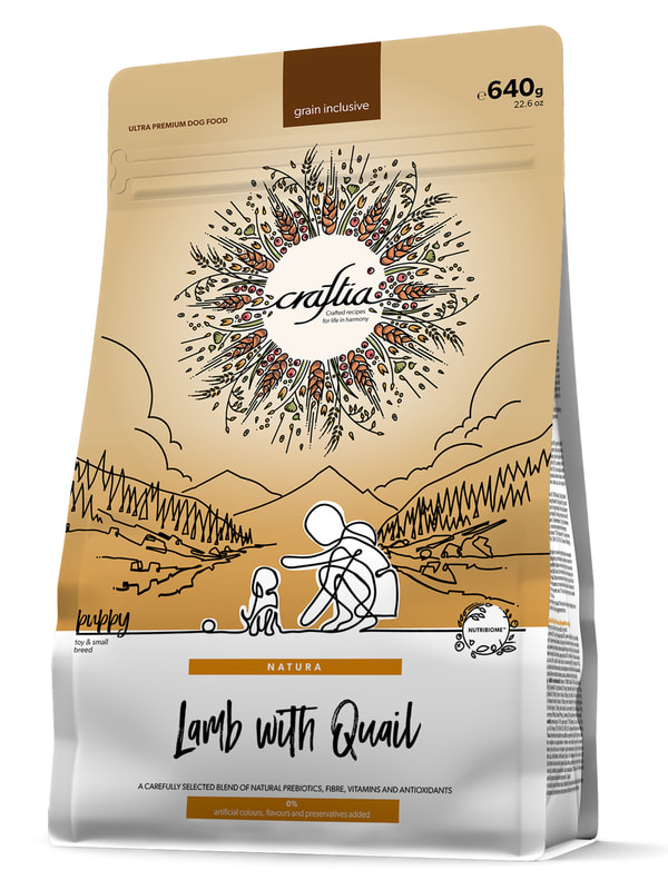 CRAFTIA NATURA сухой корм для щенков миниатюрных и мелких пород из ягненка с перепелкой.
