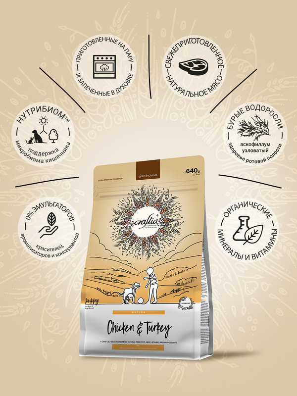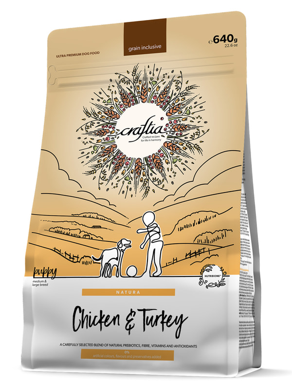 CRAFTIA NATURA сухой корм для щенков средних и крупных пород из курицы и индейки.
