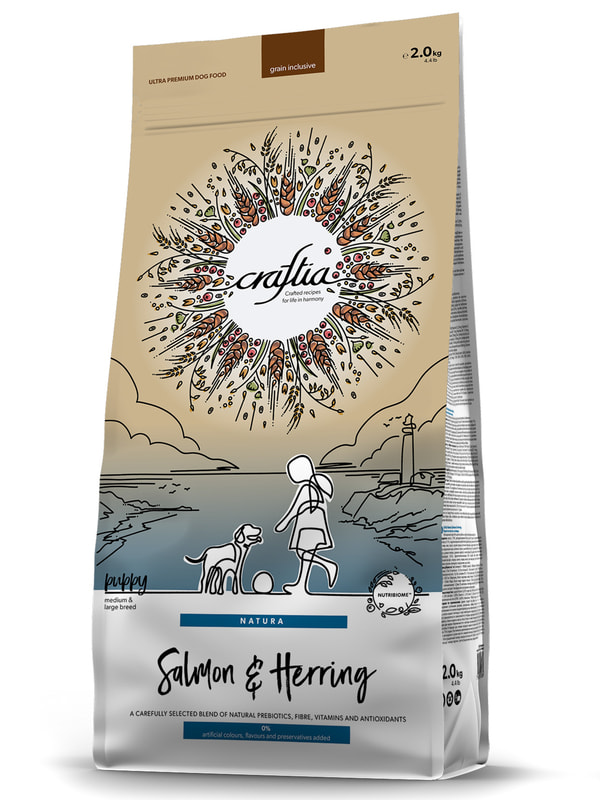 CRAFTIA NATURA сухой корм для щенков средних и крупных пород из лосося и сельди.