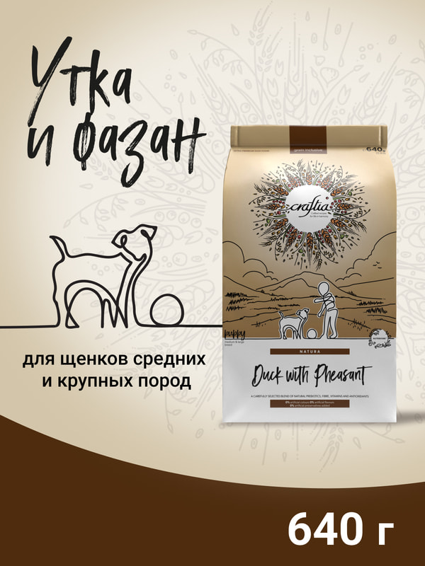Повседневные корма Craftia Сухой корм CRAFTIA NATURA для щенков средних и крупных пород из утки с фазаном 640 г