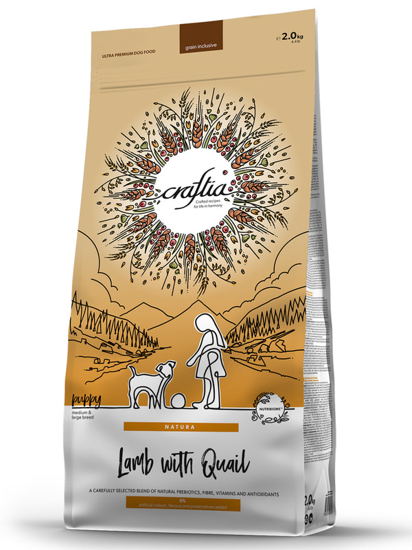 CRAFTIA NATURA сухой корм для щенков средних и крупных пород из ягненка с перепелкой.