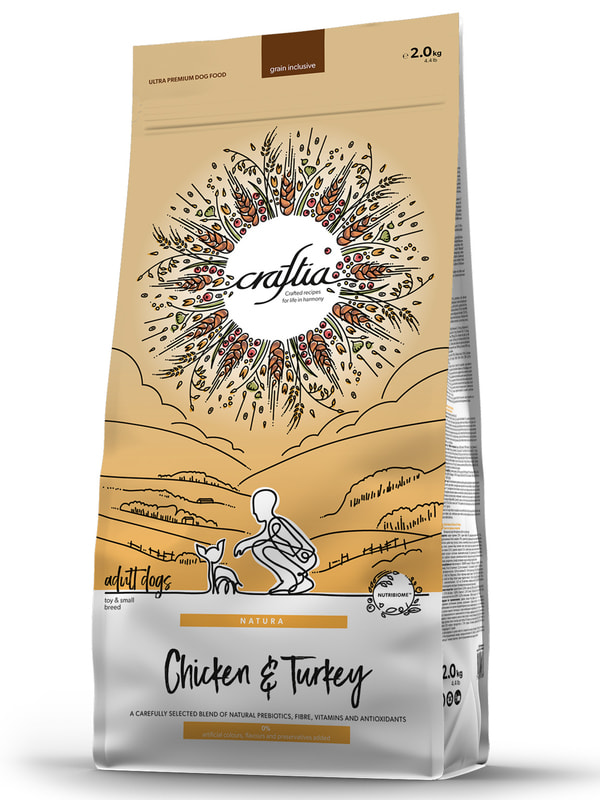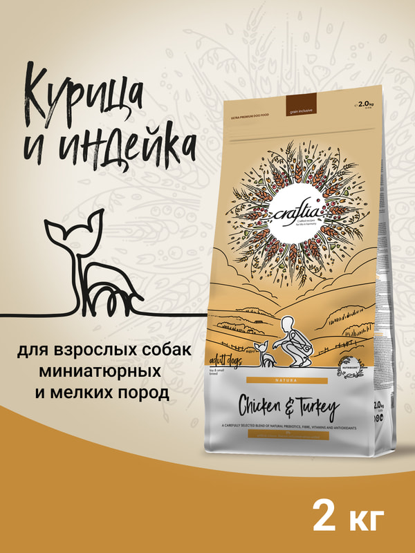 CRAFTIA NATURA сухой корм для взрослых собак миниатюрных и мелких пород из курицы и индейки.