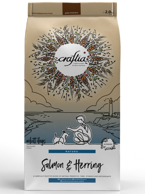 CRAFTIA NATURA сухой корм для взрослых собак миниатюрных и мелких пород из лосося с сельдью.