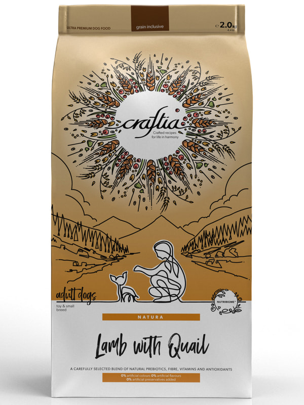 CRAFTIA NATURA Сухой корм для взрослых собак миниатюрных и мелких пород из ягненка с перепелкой.