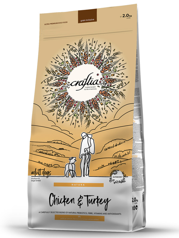 CRAFTIA NATURA сухой корм для взрослых собак средних и крупных пород из курицы и индейки.