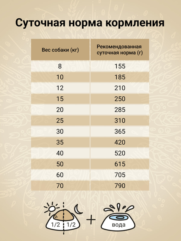 Источники углеводов — спельта, бурый рис, ячмень, овес и просо. Специально подобраны злаки с разным гликемическим индексом, чтобы питомец дольше чувствовал себя сытым: глюкоза поступает в организм постепенно, а значит, чувство голода не наступает дольше.