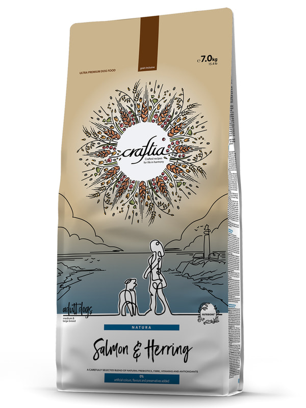 CRAFTIA NATURA сухой корм для взрослых собак средних и крупных пород из лосося и сельди.