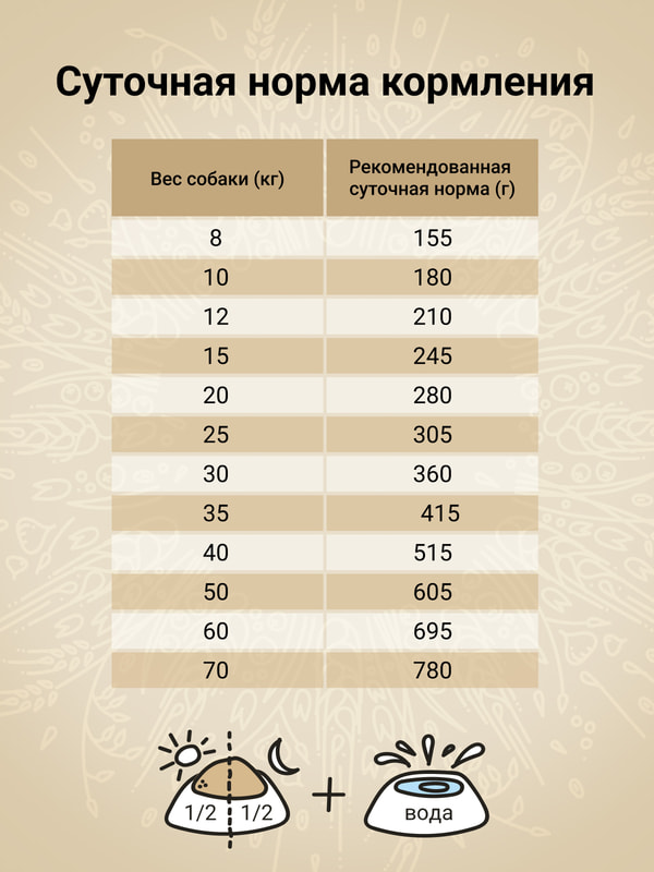 Источники углеводов — спельта, бурый рис, ячмень, овес и просо. Специально подобраны злаки с разным гликемическим индексом, чтобы питомец дольше чувствовал себя сытым: глюкоза поступает в организм постепенно, а значит, чувство голода не наступает дольше.