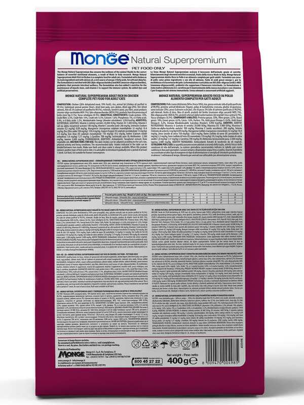 Monge (Монж) Cat Daily Line Indoor сухой корм из курицы для домашних кошек и котов 400 г.