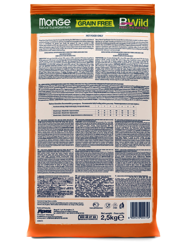 Monge (Монж) Dog BWild GRAIN FREE Mini (холистик) беззерновой сухой корм из мяса утки с картофелем для взрослых собак мелких пород 2,5 кг.