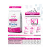 Ингредиенты: Курица (30% дегидрированного, 10% свежего), рис, кукуруза, животный жир (куриный жир очищенный на 99,5%), сухая свекольная пульпа, картофельный белок, пивные дрожжи, кукурузная клейковина, гидролизованный животный белок(печень), рыба (дегидрированный лосось), рябий жир (масло лосося 1%), минеральные вещества, дрожжевые продукты (маннанолигосахариды МОS 1%), ксилоолигосахариды (XOS 0,3%), юкка Шидигера (0,3%), мука из водорослей (спирулина – (Arthrospira platensis) 0,3%), глюкозамин (0,057%), хондроитина сульфат (0,04%).