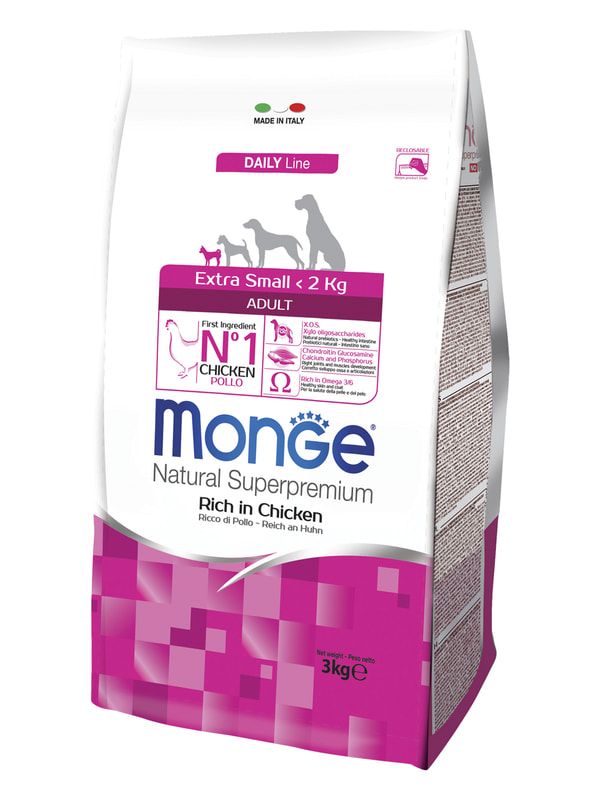 Monge (Монж) Dog Daily Line Extra Small сухой корм из мяса курицы для взрослых собак миниатюрных пород 3 кг.