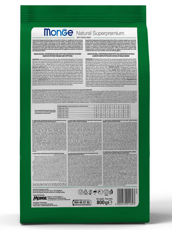 Monge (Монж) Dog Daily Line Puppy & Junior Maxi сухой корм из мяса курицы для щенков крупных пород 800 г.