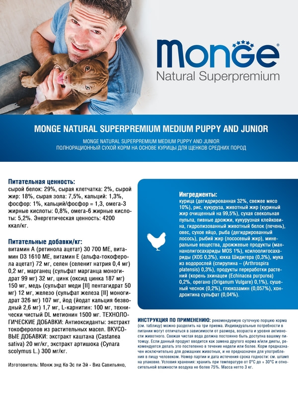 Monge (Монж) Dog Daily Line Puppy & Junior Medium сухой корм из мяса курицы для щенков средних пород 3 кг.