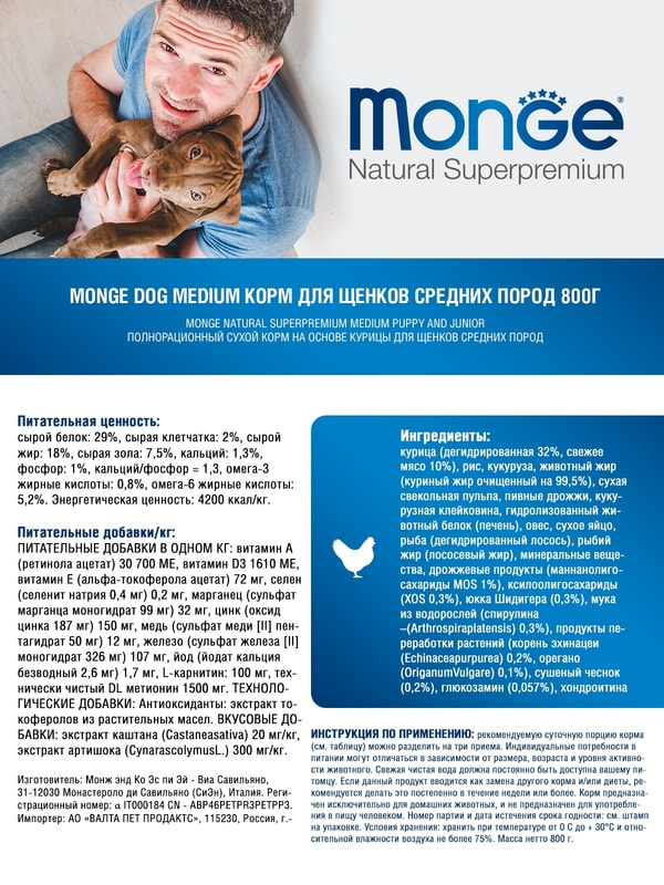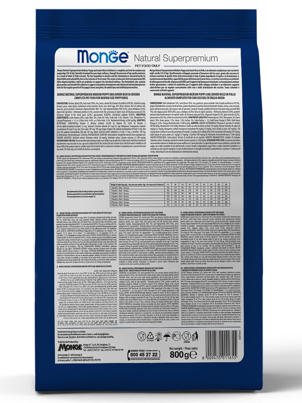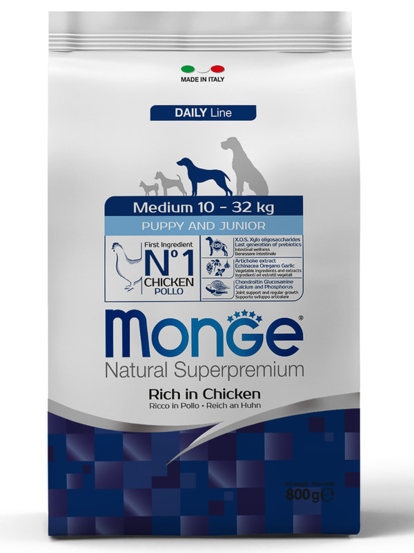 Monge (Монж) Dog Daily Line Puppy & Junior Medium сухой корм из мяса курицы для щенков средних пород 800 г.