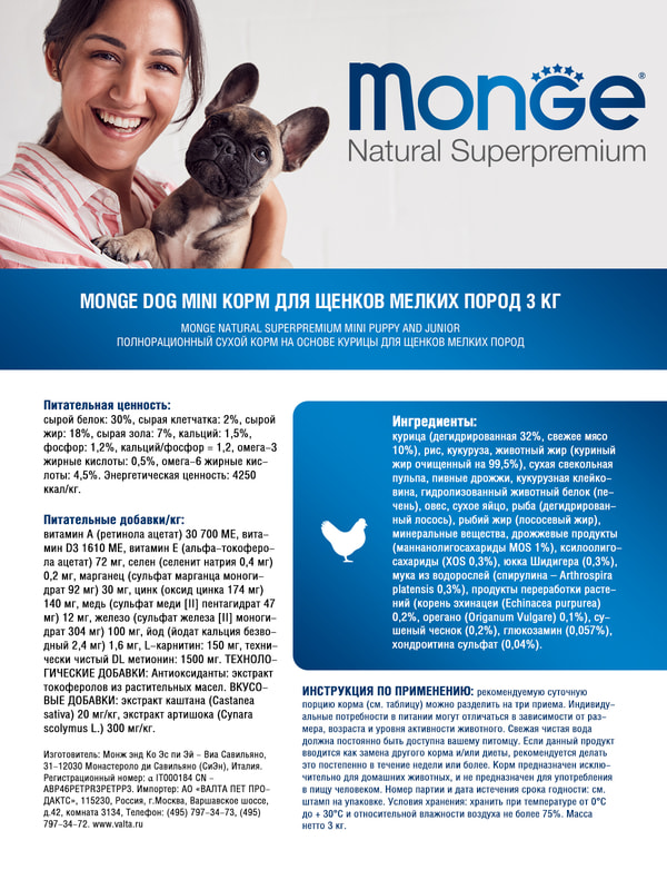 Monge (Монж) Dog Daily Line Puppy & Junior Mini сухой корм из мяса курицы для щенков мелких пород 3 кг.