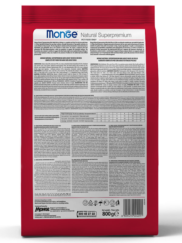 Monge (Монж) Dog Daily Line Mini сухой корм из мяса курицы для взрослых собак мелких пород 800 г.