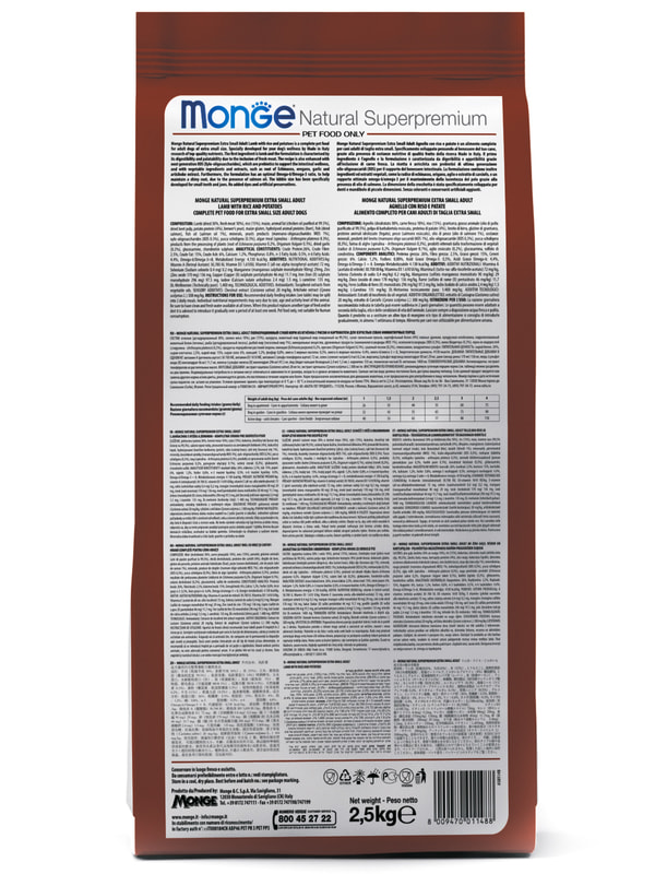 Monge (Монж) Dog Speciality Line Monoprotein Mini сухой корм из мяса ягнёнка с рисом для взрослых собак мелких пород 2,5 кг.