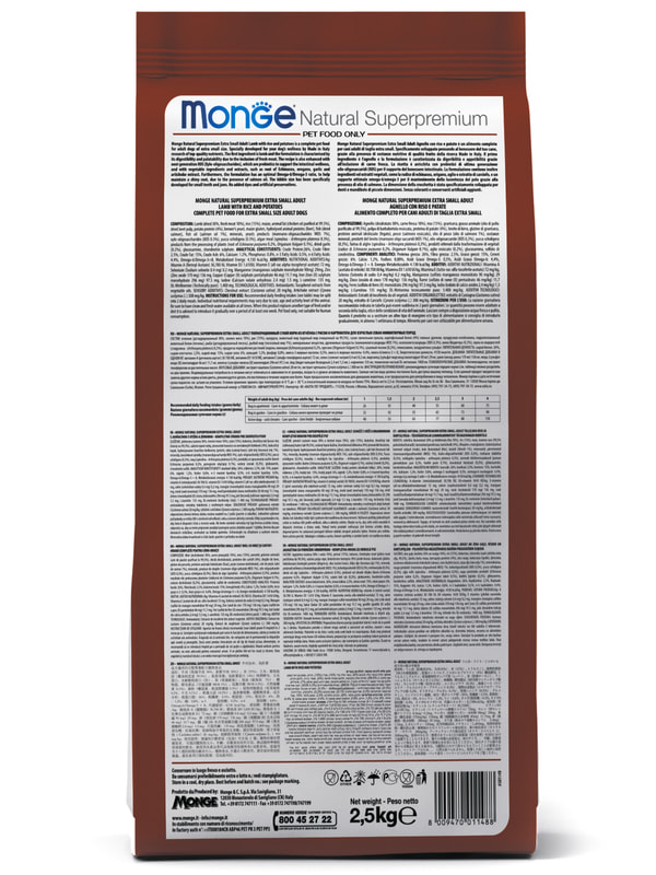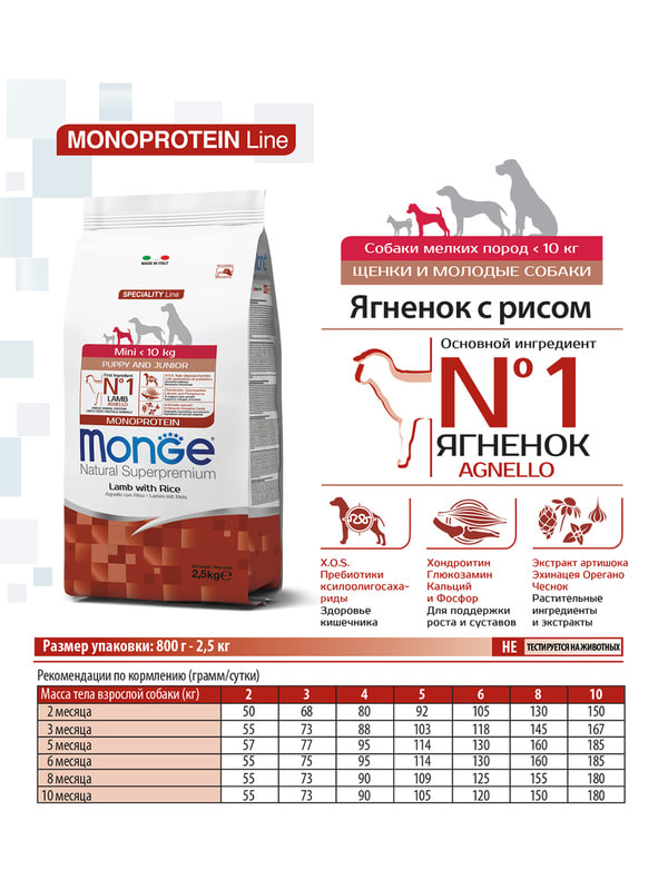 Monge (Монж) Dog Speciality Line Monoprotein Puppy & Junior Mini сухой корм из мяса ягнёнка с рисом для щенков мелких пород 2,5 кг.