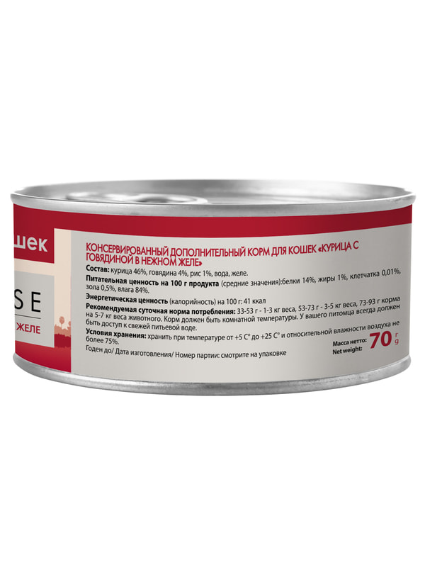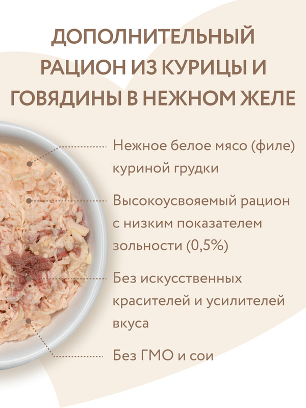 Ингредиенты: курица 46%, говядина 4%, рис 1%, вода, желе.