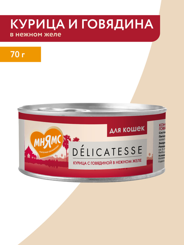 Мнямс консервы для кошек курица с говядиной в нежном желе 70 г