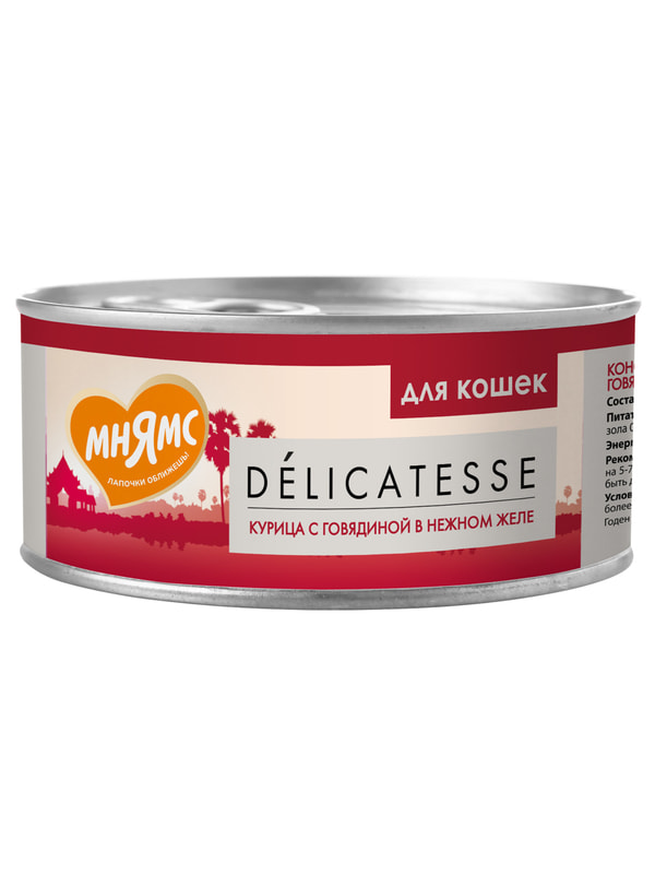 Консервы для кошек «Мнямс» состоят исключительно из отборных натуральных компонентов и не содержат сою, искусственные красители и усилители вкуса.