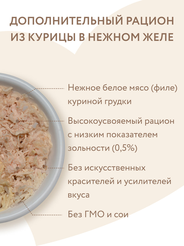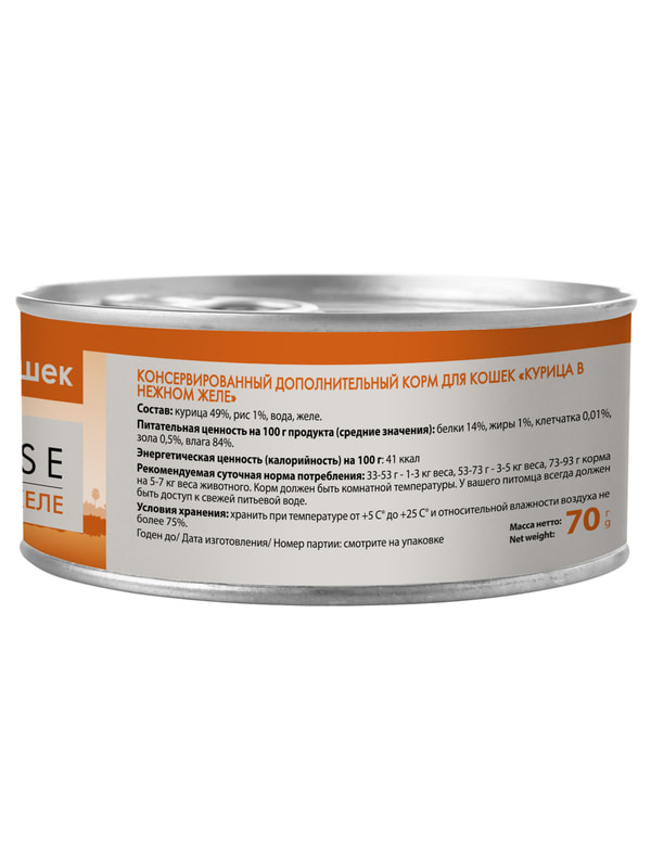 Ингредиенты: курица 49%, рис 1%, вода, желе.