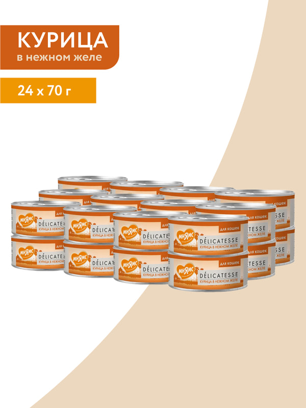Повседневные корма Мнямс Влажный дополнительный корм Мнямс для кошек Курица в нежном желе 70 г