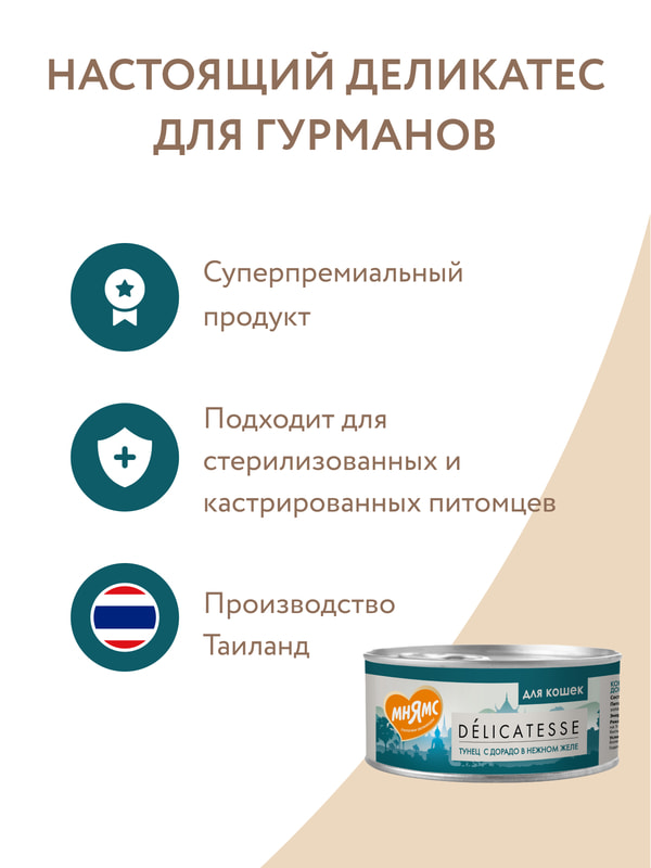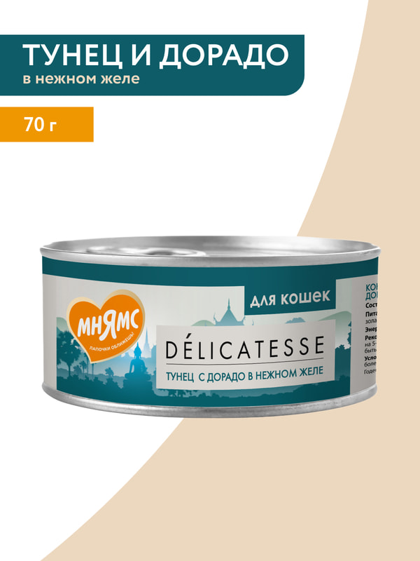 Мнямс консервы для кошек тунец с дорадо в нежном желе 70 г