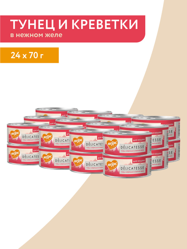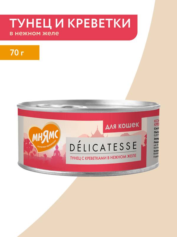 Мнямс консервы для кошек тунец с креветками в нежном желе 70 г