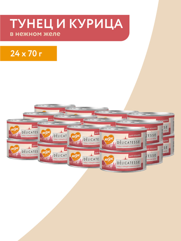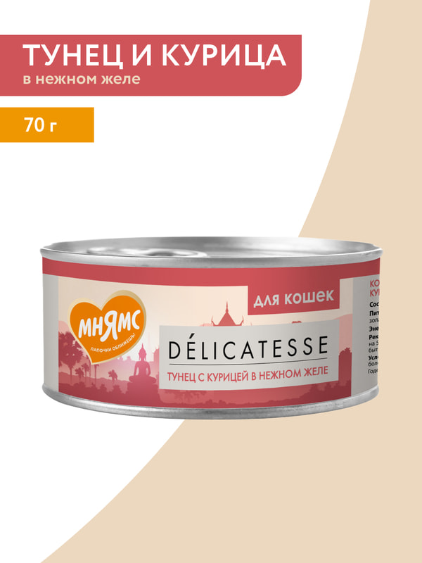 Мнямс консервы для кошек тунец с курицей в нежном желе 70 г
