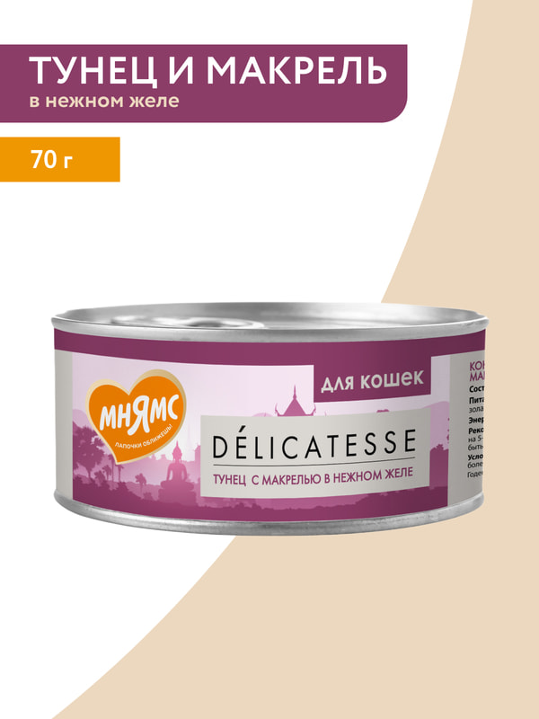 Мнямс консервы для кошек тунец с макрелью в нежном желе 70 г