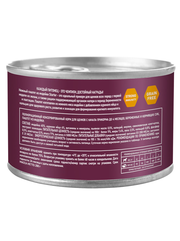 Нежный паштет из индейки - это идеальный прикорм для щенков с первой недели их жизни, а также рацион поддерживающий организм матери в период беременности и лактации.