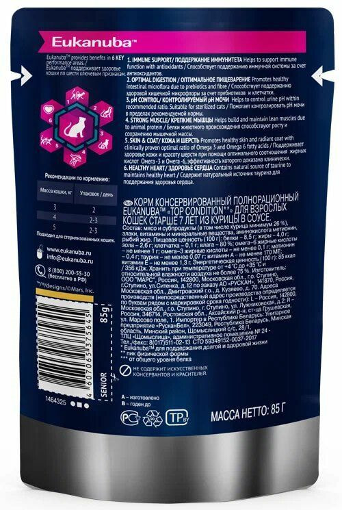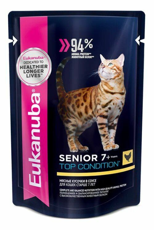 Влажные корма, консервы Eukanuba Влажный корм для кошек Eukanuba из курицы в соусе для взрослых кошек старше 7 лет, 24 шт по 85 г