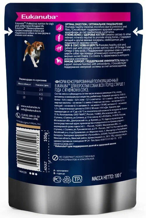 Влажные корма, консервы Eukanuba Влажный корм для собак всех пород Eukanuba с ягнёнком в соусе, 24 шт по 100 г