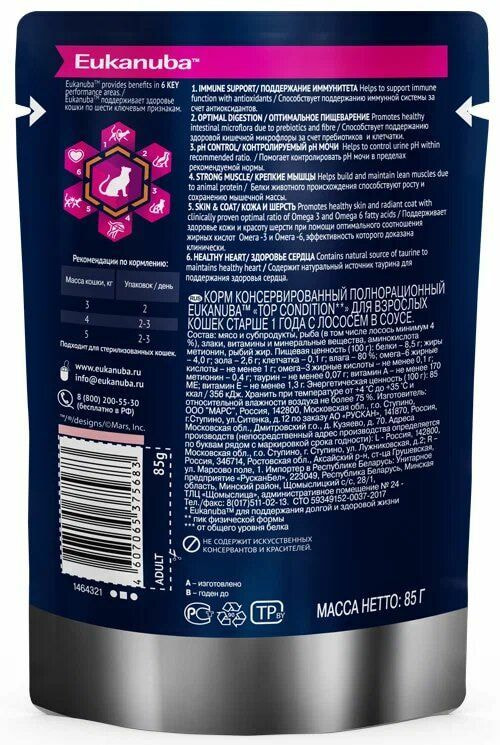 ПОДДЕРЖАНИЕ ИММУНИТЕТА Способствует поддержанию иммунной системы за счёт антиоксидантов.2. ОПТИМАЛЬНОЕ ПИЩЕВАРЕНИЕ Способствует поддержанию здоровой кишечной микрофлоры за счёт пребиотиков и клетчатки.3. КОНТРОЛИРУЕМЫЙ pH МОЧИ Помогает контролировать pH мочи в пределах рекомендуемой нормы.4. КРЕПКИЕ МЫШЦЫБелки животного происхождения способствуют росту и сохранению мышечной массы.5. КОЖА И ШЕРСТЬПоддерживает здоровье кожи и шерсти при помощи оптимального соотношения жирных кислот омега-6 и омега-3, эффективность которых доказана клинически.6. ЗДОРОВЬЕ СЕРДЦАСодержит натуральный источник таурина для поддержания здоровья сердца.