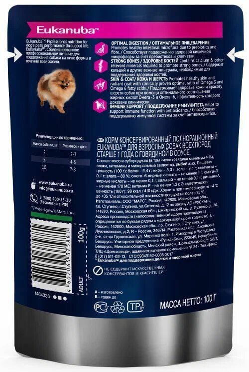Влажные корма, консервы Eukanuba Влажный корм для взрослых собак всех пород Eukanuba с говядиной в соусе, 24 шт по 100 г