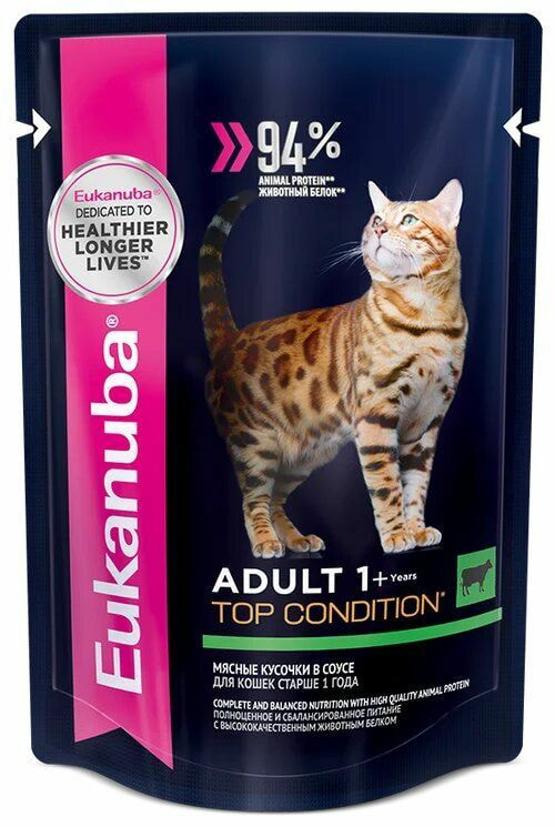 Влажные корма, консервы Eukanuba Влажный корм Eukanuba для взрослых кошек с говядиной в соусе 24 шт по 85 г