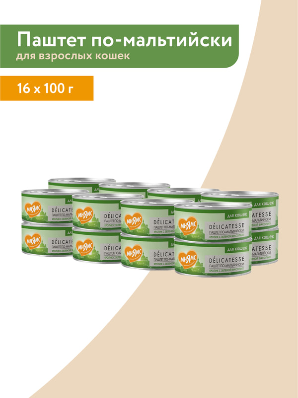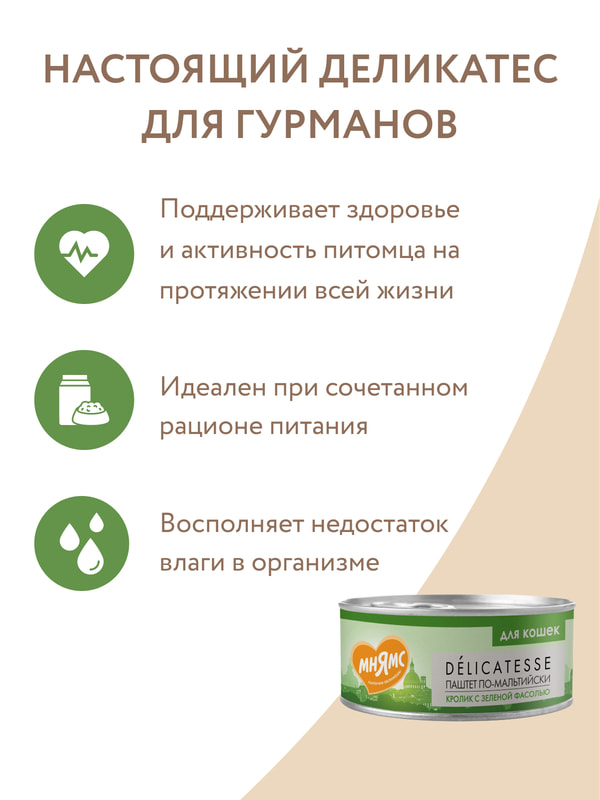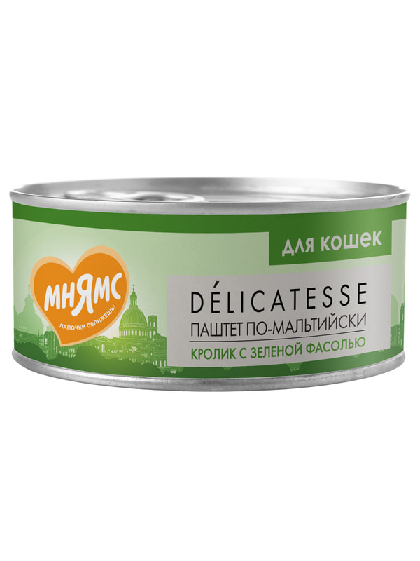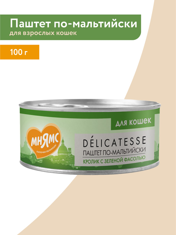 Повседневные корма Мнямс Влажный корм Мнямс Деликатес Кролик с зеленой фасолью для кошек "Паштет по-мальтийски" 100 г