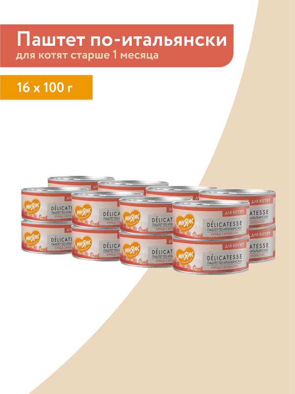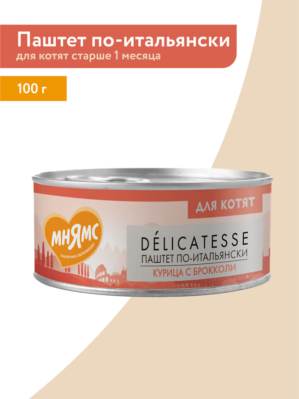 Повседневные корма Мнямс Влажный корм Мнямс Деликатес Курица с брокколи для котят старше 1 месяца "Паштет по-итальянски" 100 г