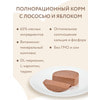 Ингредиенты: мясо и мясные субпродукты 65%, лосось 4%, яблоко 2%, клюква, масло подсолнечное, витамины и минералы, DL-метионин, L-карнитин, таурин.